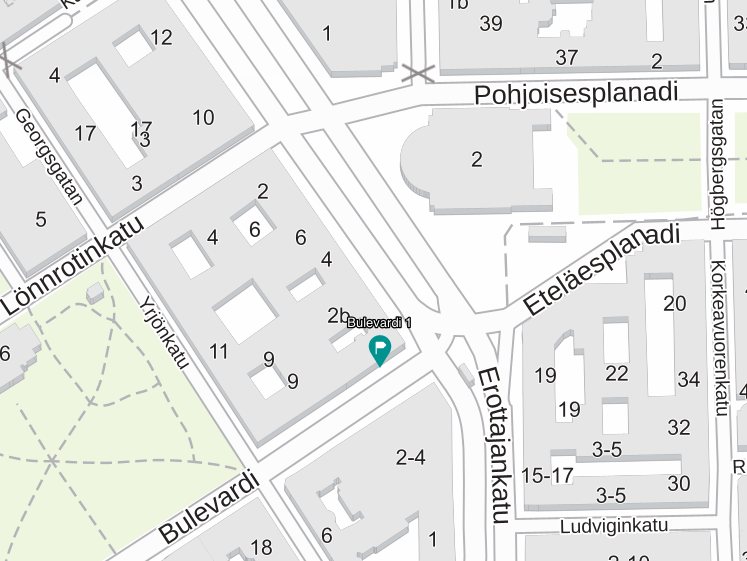 Helsingin ydinkeskustassa hotelli Klaus K:ta vastapäätä.